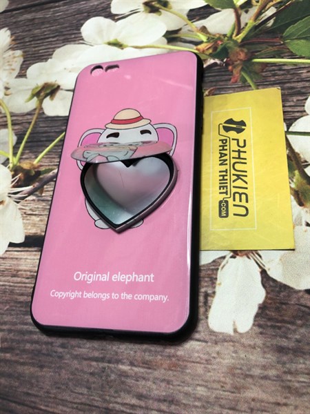 Ốp lưng viền đen in hình kèm gương trái tim Iphone 6 Plus