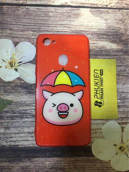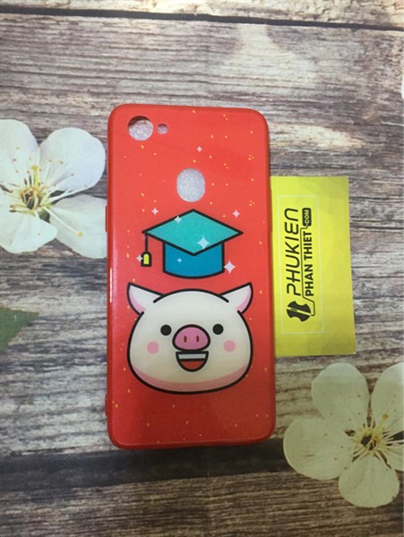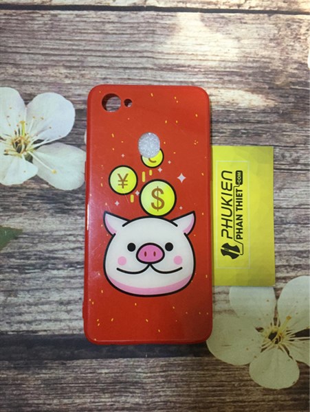 Ốp lưng viền dẻo đỏ in hình heo OPPO F7