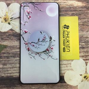Ốp lưng viền đen in hình hoa Kèm ring Samsung Galaxy A7 2018