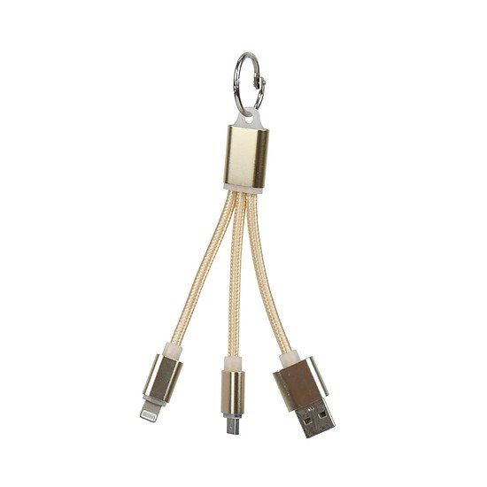 Cáp sạc 3 đầu móc khóaHỗ trợ 2 đầu sạc Micro USB cho các máy Android và Lightning cho các máy iPhoneCáp dài 18cm, chuyên sử dụng để sạc điện thoại từ pin dự phòngCáp được bọc dây dù cực bền, chống đứt dâyDây có móc khóa có thể gắn vào chìa khóa giúp tiện dụng hơn khi sử dụng