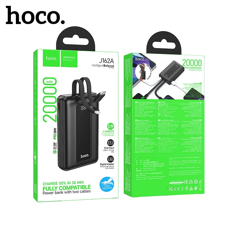 Pin sạc dự phòng Hoco J162A 20.000mAh 22,5W + PD20W 2 dây cáp